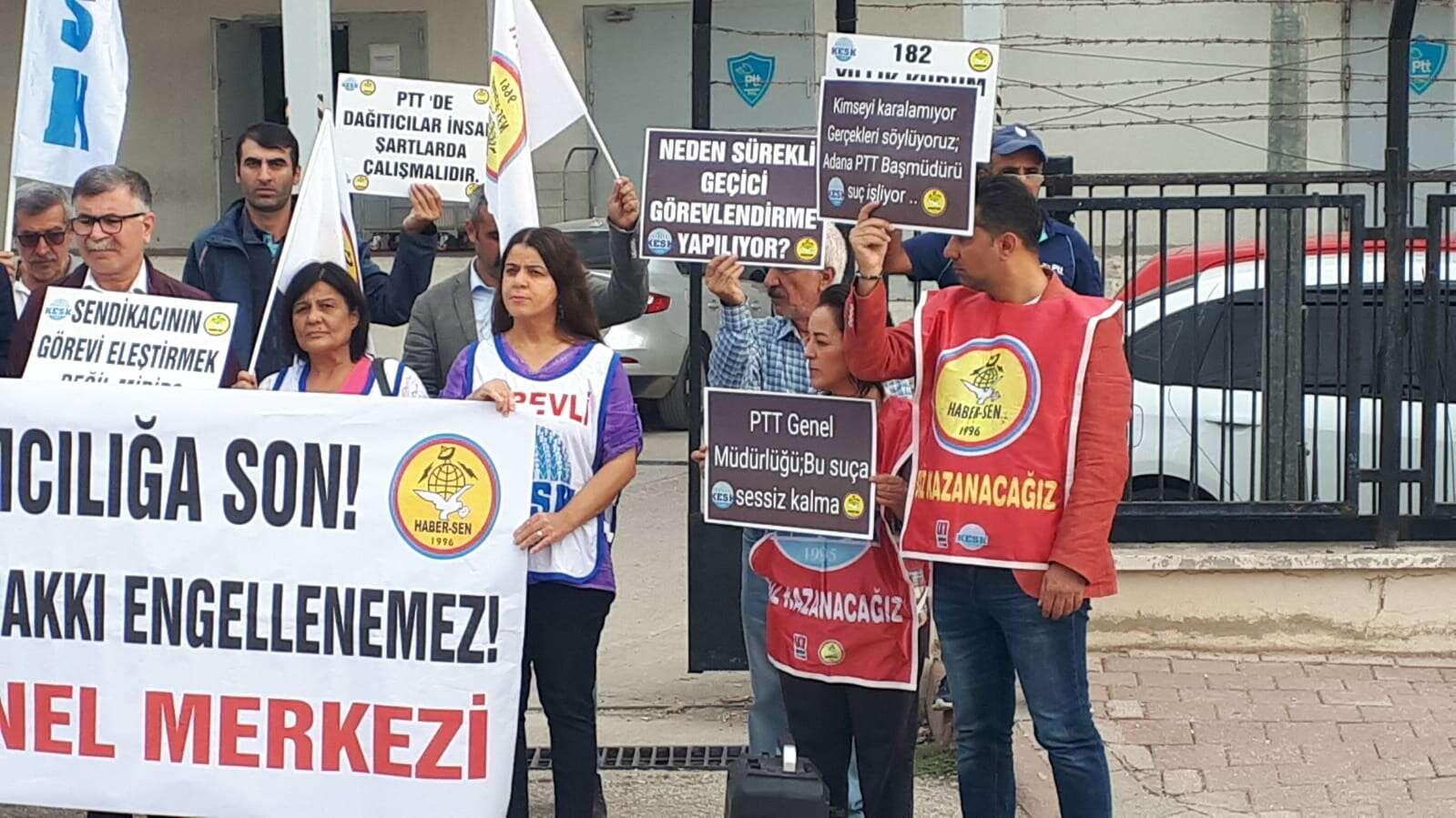 KESK Haber-SEN Seyhan Posta Dağıtım Merkezi önünde 'Sendikal Öegütlenme Hakkı Engellenemez' başlıklı açıklama düzenledi.