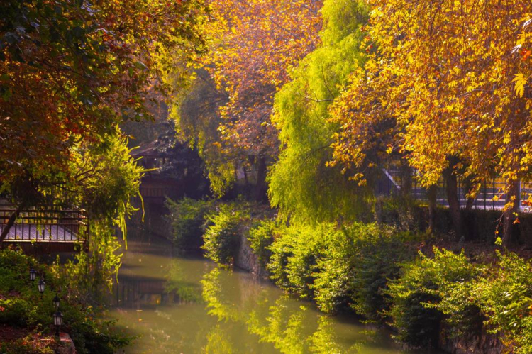 Adana'nın Kozan ilçesinde Atatürk Parkı, sonbaharın gelmesiyle sarı, yeşil ve kahverengi tonlarında kartpostallık manzaralar oluşturdu. Vatandaşlar, bu görsel şöleni görmek için parka akın ederken, parkın içinden geçen Kilgen Çayı da bu manzaraya eşlik ediyor.