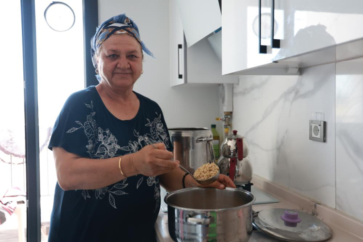Yeni evinin mutfağında keşkek yapan Meryem Alkış, “Evi çok beğendim ve odaları dört dörtlük. Çok güzel, serin, havadar ve her tarafı görüyor. Mutfakta bugün keşkek yapıyorum. Düğünümüz var. Misafirlerimiz var. Akşama hazırlık yapıyoruz. Herkes evimi beğeniyor ve hediyeler getiriyorlar. Allah razı olsun devletimizden. Bu yaşıma kadar bekleseydim bu kadar güzel ev göremezdim” ifadelerini kullandı.