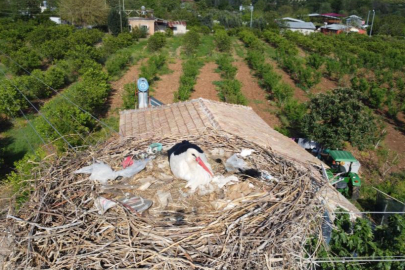 Adana’nın Kozan ilçesinde “Portakal ailesi” olarak adlandırılan leylekler, yuvalarına plastik poşet ve terlik gibi atık malzemeler taşıdı. Doğaya verilen zarar, drone ile çekilen görüntülerle gözler önüne serildi.