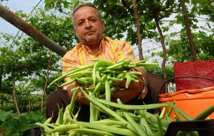 Türkiye'nin üretim merkezlerinden Mersin'de örtü altında iki farklı ürün üretimi yapan çiftçiler, üzümden önce bağların altlarına diktikleri fasulyede hasada başladı.