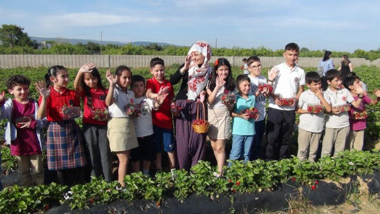 Mersin' de Milli Eğitim Müdürü Durmuş öğrencilerle çilek hasadında buluştu