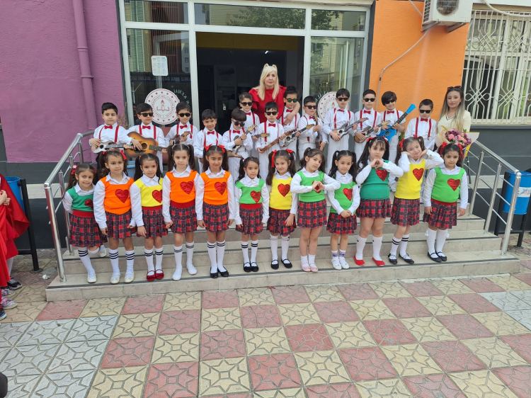 Sınıf Öğretmeni Hatice Özmüş’ün hazırlayıp, koreografisine Gizem Delioğlu’nun imza attığı gösteride; 1-G Sınıfı’nın minikleri hünerlerini sergiledi. Dans ve çeşitli gösteriler sunan çocuklar, uzun süren çalışmaların ürünü olarak beğeni topladı. Rengarenk kostümleri ve ellerinde Türk bayraklarıyla sahneye çıkan öğrenciler, sergiledikleri enerjik ve uyumlu performanslarla okul bahçesini adeta bir bayram alanına dönüştürdü.