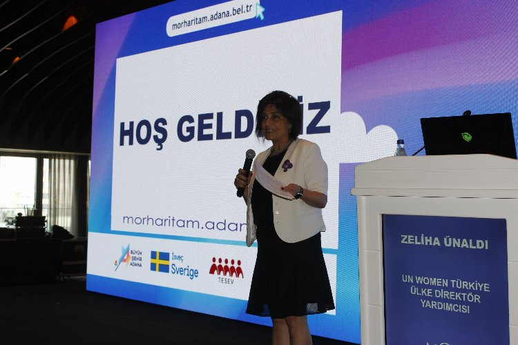 UN Women Türkiye Ülke Direktörü Yardımcısı Zeliha Ünaldı, “Ben de toplumsal cinsiyet eşitsizliğine karşı geçici önlemler için elime mikrofon almış oldum. Sayın genel sekreter yardımcımız Türkan Hanım ve Adana Büyükşehir Belediyesi'nin sevgili çalışanları, sevgili çalışma arkadaşlarım ama bunu söylemeden edemeyeceğim, çok sevgili hemşerilerim çünkü bugün hakikaten burada bir Adanalı olarak da bulunmak benim için çok büyük bir ayrıcalık. Ama öncesinde bir Adanalı olarak yine aslında bu işin nasıl bir tamamlayıcılığı olduğunu ben kendi öz yaşam hikayemden de söyleyebilirim. Ben bugün bu işi yapıyorsam, yıllardır toplumsal cinsiyet eşitliği alanında çalışıyorum. Belki de en büyük sebeplerinden bir tanesi çeşitliliğin ve farklılığın dışlandığı değil kutlandığı bir memlekette doğup büyüdüğüm için” dedi.