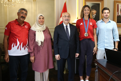 Milli sporcu, Paris'te kazandığı bronz madalyayı bir süreliğine annesi Ayşe'nin boynuna astı.