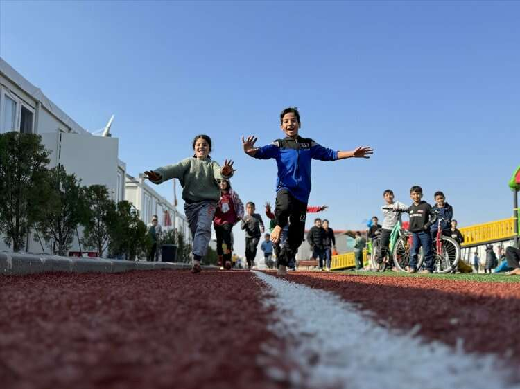 Osmaniye'de 6 Şubat depremlerinde evsiz kalan binlerce afetzedeye yuva olan cnde, çocuklar neşeli oyunları ve koşuşturmalarıyla hüzünlü havayı dağıtıyor.