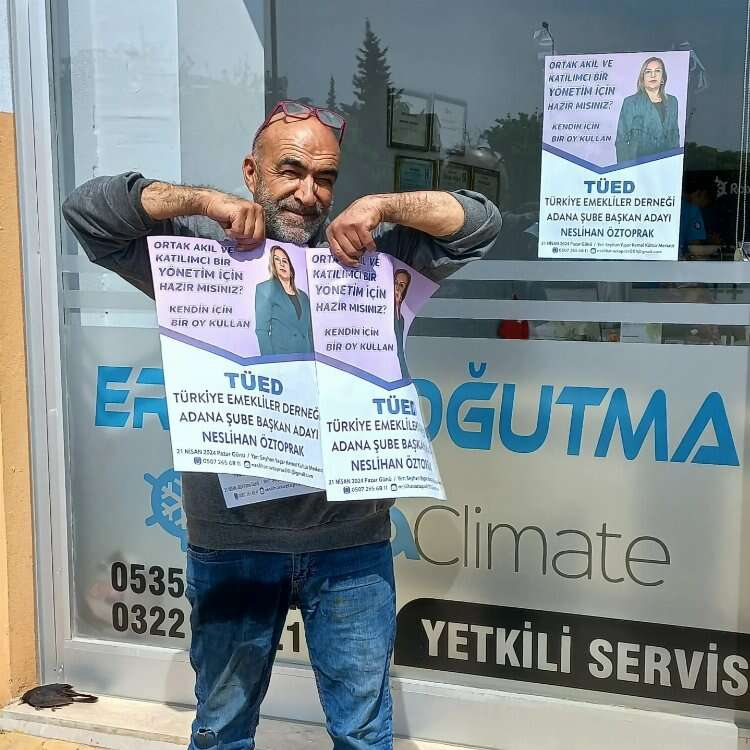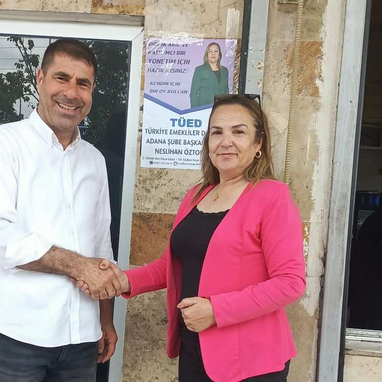 Türkiye Emekliler Derneği Adana Şubesi seçimlerine sayılı günler kaldı. Emeklilerde seçim heyecanı yaşanırken, Türkiye Emekliler Derneği Adana Şube Başkanlığı için Neslihan Öztoprak aday olarak yola çıktı. Gece gündüz demeden mahalle mahalle, ilçe ilçe gezerek emeklilere ulaşan Öztoprak, emeklilerin sorunlarını dinleyip onlarla ne yapılabileceğine yönelik fikir alışverişinde bulunuyor.