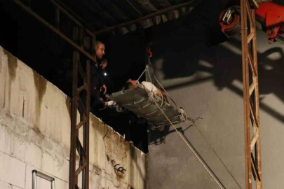 Pencereden apartmanın terasına düştü, itfaiye vinçle kurtardı