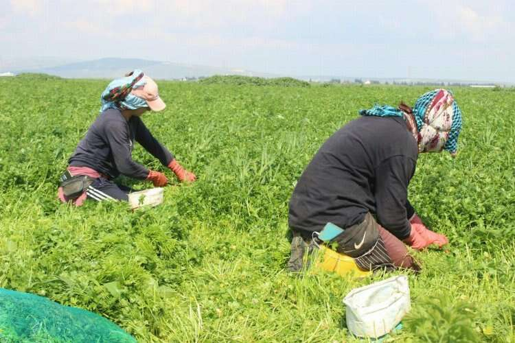 Hatay'ın Reyhanlı ilçesinde başlayan maydanoz hasadı, bölgede yaz sonuna kadar devam edecek. Günde ortala bin 500 TL yevmiye alan Diyarbakırlı işçiler, zorlu koşullar altında günde ortalama 4 dönüm arazi hasat ediyor.