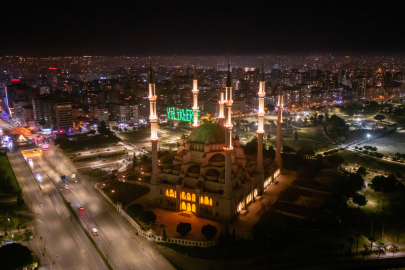 Sabancı Merkez Camii'nde Ramazan coşkusu: Minarelere mahya asıldı