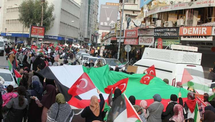 Adana’da Adana Sivil İnisiyatif Meclisi (ASİM) üyeleri şehitler ve Filistin halkı için yürüyüş düzenledi.