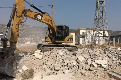 Çevrede güvenlik önlemi alan ekipler, iş makineleriyle binaları yıktı.