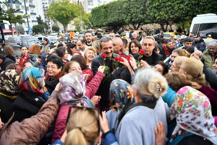 Her hafta Yurt Mahallesi Kapalı Semt Pazarında kurulan Sosyete Pazarını ziyaret eden Başkan Soner Çetin, daha pazarın girişimde adeta sevgi çemberine alındı. Gösterilen büyük ilgiden pazara girmekte zorlanan Başkan Soner Çetin, çoğunluğu kadınlardan oluşan vatandaşlara gül takdim ederken, kendisiyle hatıra fotoğrafı çektirmek isteyenleri de geri çevirmedi.