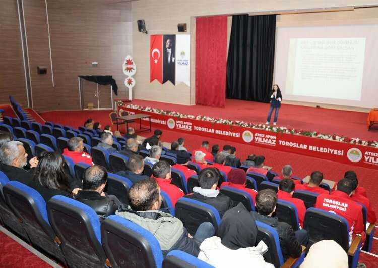 Mersin'in merkez ilçe Toroslar Belediyesi Temizlik İşleri Müdürlüğü personeline iş sağlığı ve güvenliği eğitimi verildi.
