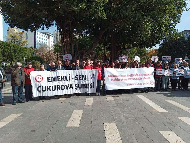 Özkan, “Bugün burada Türkiye İşçi Partisi Çukurova İlçe Örgütü olarak emeklilerimizle birbirimizin sesine ses olmak, hep birlikte sesimizi yükseltmek, iktidarın emekliye reva gördüğü sadaka gibi bir artışı değil hakkımız olanı almak adına bir kere daha haykırmak için toplandık” dedi.