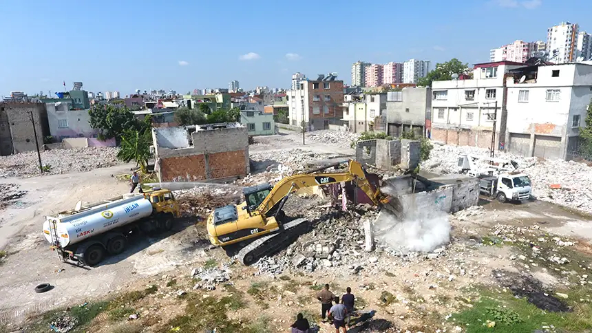 Yüreğir Belediyesi, Ulubatlı Hasan Mahallesi'nde başlattığı dönüşüm kapsamında kamulaştırılan metruk binaları yıkıyor.